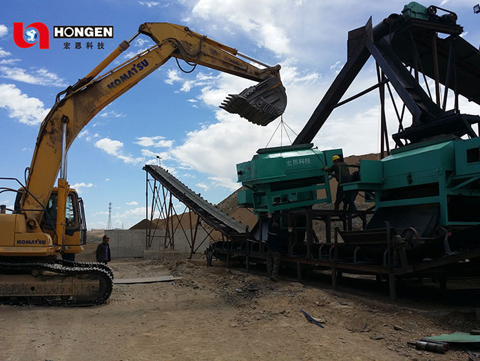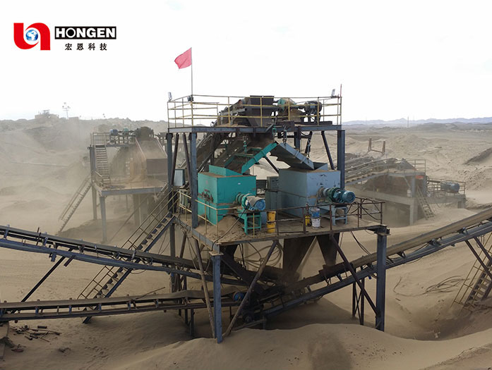 宏恩科技疊層高頻振動細(xì)篩的用途及特點:1、鐵礦、鈦鐵礦選礦廠用于精礦粒度控制與分級。高頻振動細(xì)篩的篩分效率高,篩下產(chǎn)物正富集效果顯著,從而提高了精選入選品位(可同比提高精礦品位1%~3%)。由于分級效率提高,精礦平均粒度增粗,從而使精礦過濾條件改善,濾餅水分降低0.5%~1%。2、鎢、錫、鉭、鈮礦選礦廠這類礦石較脆,比重大,可用高頻振動細(xì)篩代替螺旋分級機(jī)、旋流器分級,或與它們組合分級,可顯著降低有用礦物過粉碎,提高選礦效率,使回收率提高8%~15%,同時使磨礦系統(tǒng)的處理能力提高約20~30%以上。3、玻璃原料石英砂、長石礦選廠石英砂棒磨產(chǎn)品粒級寬,棱角多,屬難篩物料,采用高頻振動細(xì)篩可穩(wěn)定生產(chǎn)出合格產(chǎn)品。4、高嶺土選礦廠用于控制終產(chǎn)品粒度或高梯度磁選機(jī)前隔粗。?主要技術(shù)參數(shù)分離粒度:≥0.074毫米給礦濃度:25~50%(根據(jù)物料性質(zhì)確定)處理量:30~300噸/時(分離粒度不同處理量不同)給礦路數(shù):三路、四路、五路篩面傾角:20~30°(根據(jù)分離粒度確定)篩網(wǎng)孔徑:根據(jù)分離粒度和物料性質(zhì)確定篩孔尺寸噪音:~80分貝用途及特點:1、鐵礦、鈦鐵礦選礦廠用于精礦粒度控制與分級。高頻振動細(xì)篩的篩分效率高,篩下產(chǎn)物正富集效果顯著,從而提高了精選入選品位(可同比提高精礦品位1%~3%)。由于分級效率提高,精礦平均粒度增粗,從而使精礦過濾條件改善,濾餅水分降低0.5%~1%。2、鎢、錫、鉭、鈮礦選礦廠這類礦石較脆,比重大,可用高頻振動細(xì)篩代替螺旋分級機(jī)、旋流器分級,或與它們組合分級,可顯著降低有用礦物過粉碎,提高選礦效率,使回收率提高8%~15%,同時使磨礦系統(tǒng)的處理能力提高約20~30%以上。3、玻璃原料石英砂、長石礦選廠石英砂棒磨產(chǎn)品粒級寬,棱角多,屬難篩物料,采用高頻振動細(xì)篩可穩(wěn)定生產(chǎn)出合格產(chǎn)品。4、高嶺土選礦廠用于控制終產(chǎn)品粒度或高梯度磁選機(jī)前隔粗。主要技術(shù)參數(shù)分離粒度:≥0.074毫米給礦濃度:25~50%(根據(jù)物料性質(zhì)確定)處理量:30~300噸/時(分離粒度不同處理量不同)給礦路數(shù):三路、四路、五路篩面傾角:20~30°(根據(jù)分離粒度確定)篩網(wǎng)孔徑:根據(jù)分離粒度和物料性質(zhì)確定篩孔尺寸噪音:~80分貝使用環(huán)境溫度:不超過-20~40℃1044*702振動電機(jī):三相、230V/400V-50HZ,原裝進(jìn)口電振動器激振力:0~80000N,可調(diào)?潤滑油:專用高溫油?技術(shù)參數(shù)?*振動頻率1405次/min為國產(chǎn)電振動器,1500次/min為進(jìn)口電振動器。